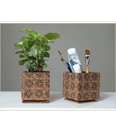 This versatile set of cork cube containers features beautiful traditional patterns and serves a dual purpose as both plant pots and desktop organizers. The natural cork material provides excellent plant growing conditions while also offering practical storage for pens, brushes, or small office supplies. The matching geometric patterns create visual cohesion whether used together or separately throughout your space. Perfect for creative studios, home offices, or living areas where both functionality and style are priorities, these containers demonstrate how sustainable materials can enhance both plant cultivation and workspace organization.