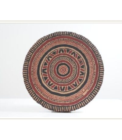 This round cork wall plate displays vibrant concentric tribal motifs in earthy reds and blacks. Eye-catching and cultural, it’s ideal as a statement piece, blending sustainable material with traditional artistry for galleries, living spaces, or unique gifting.