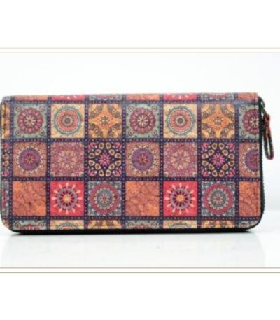Vibrant Moroccan Tile Pattern Cork Zip Wallet with Multi-Color Mandala Design