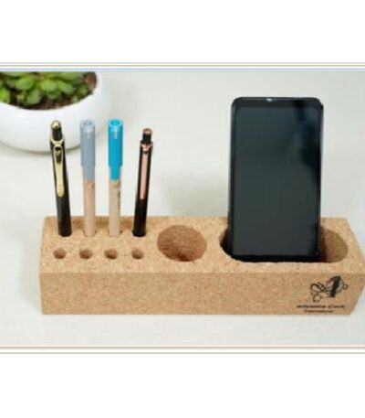 Versatile Modular Cork Desktop Organization System with Dedicated Slots for Pens, Gadgets, and Personal Accessories