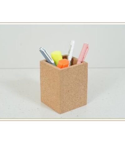 Compact Square Cork Pen Cup with Smooth Finish for Storing Colorful Markers, Pens, and Art Supplies