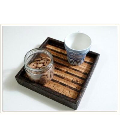 Compact Square Cork Serving Tray with Modern Linear Pattern for Intimate Coffee Service and Contemporary Table Settings