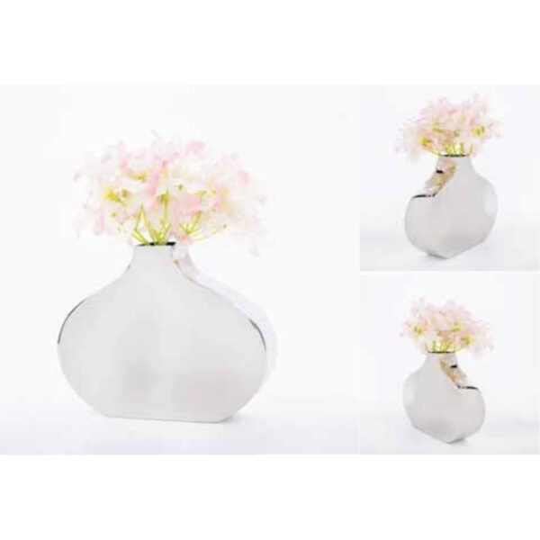 Showcase fresh or artificial blooms in this stylish modern vase, shaped with gently curved sides and a radiant polished silver finish. The contemporary silhouette brings sophistication and brightness to home décor, making every arrangement feel special. Exclusively crafted in India, this vase is 100% made in India, representing superior local design and metal crafting expertise.