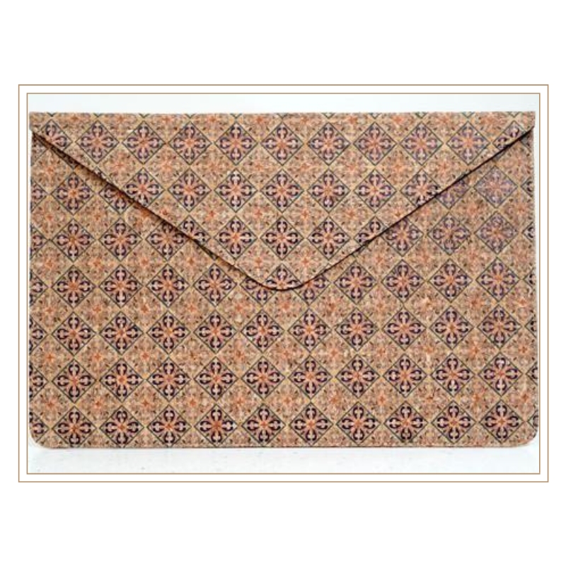 Artisan Cork Envelope Clutch with Traditional Geometric Pattern Design for Elegant Evening and Cultural Occasions