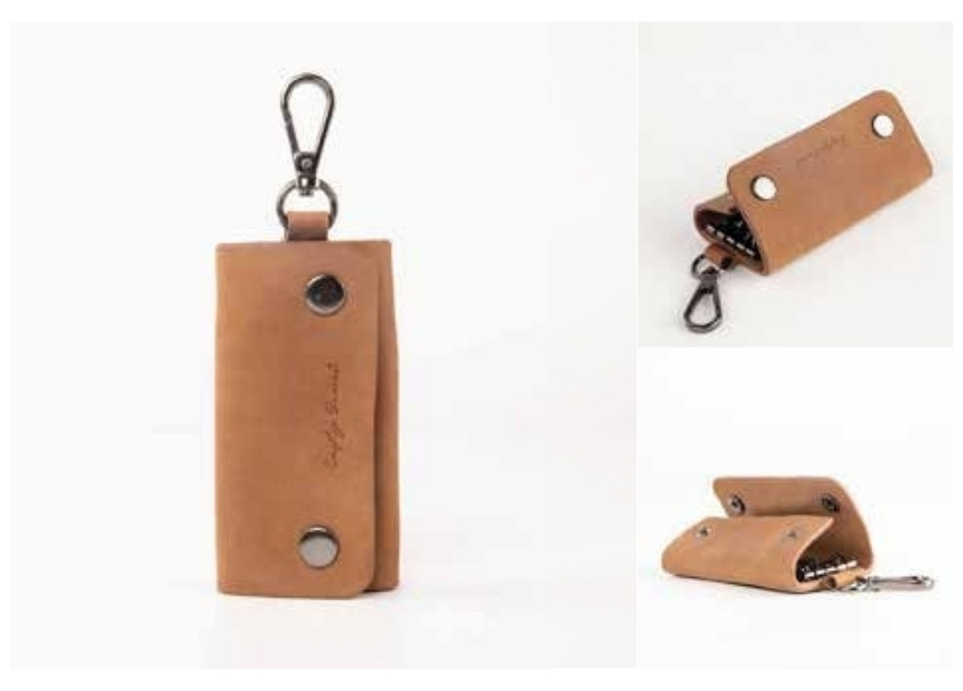 Keep all your keys neatly arranged with this classic tan leather key organizer, thoughtfully designed with strong snap buttons and a durable metallic hook for secure attachment. The soft, premium leather exterior provides both comfort and style, making it an ideal accessory for frequent travelers and busy professionals. Meticulously handcrafted by Indian artisans, this organizer is 100% made in India and ensures lasting utility with timeless appeal.