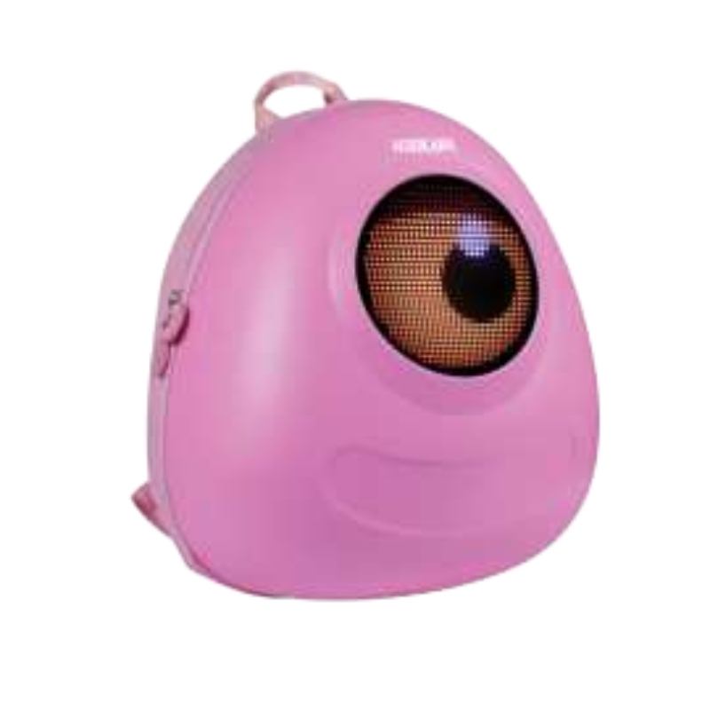 This unique pink backpack showcases a single cyclops-inspired digital eye that glows, delivering both style and security for students or commuters.