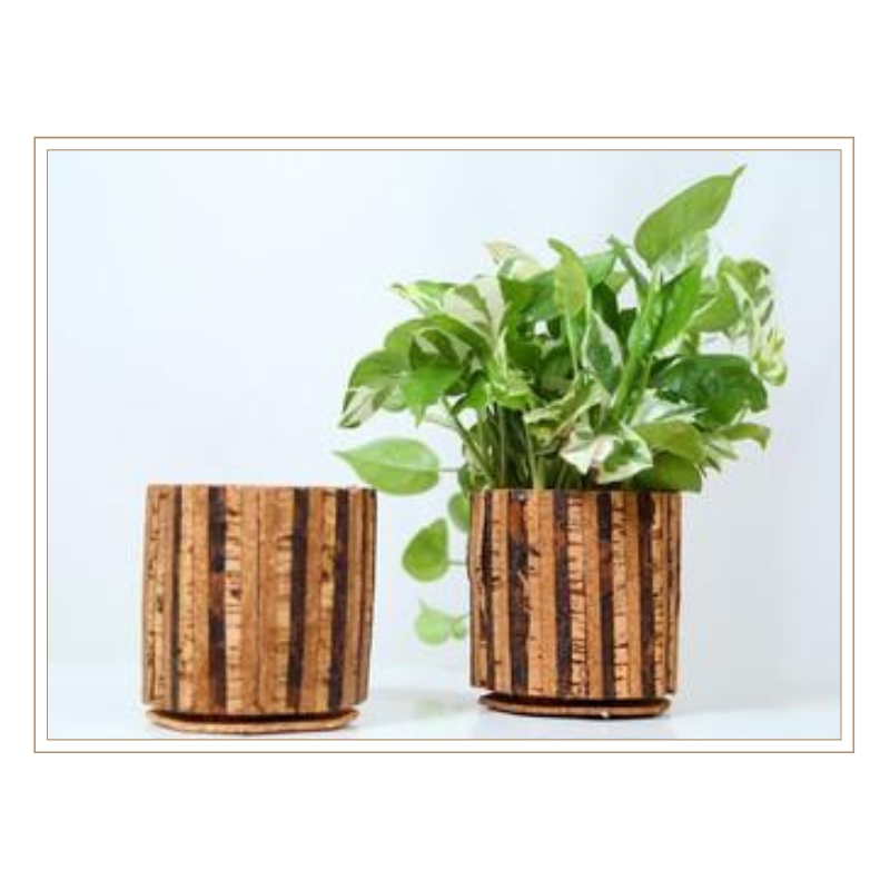 This elegant set of cylindrical cork planters features a striking vertical stripe pattern that adds visual interest and modern sophistication to any plant display. The natural cork construction provides excellent growing conditions with optimal drainage and root aeration, while the unique striped design creates a contemporary aesthetic that complements modern interior styles. Perfect for displaying leafy houseplants, small palms, or trailing varieties, these planters bring together sustainable materials with artistic design elements. The matching set allows for coordinated displays throughout your home or office while supporting environmentally conscious gardening practices.
