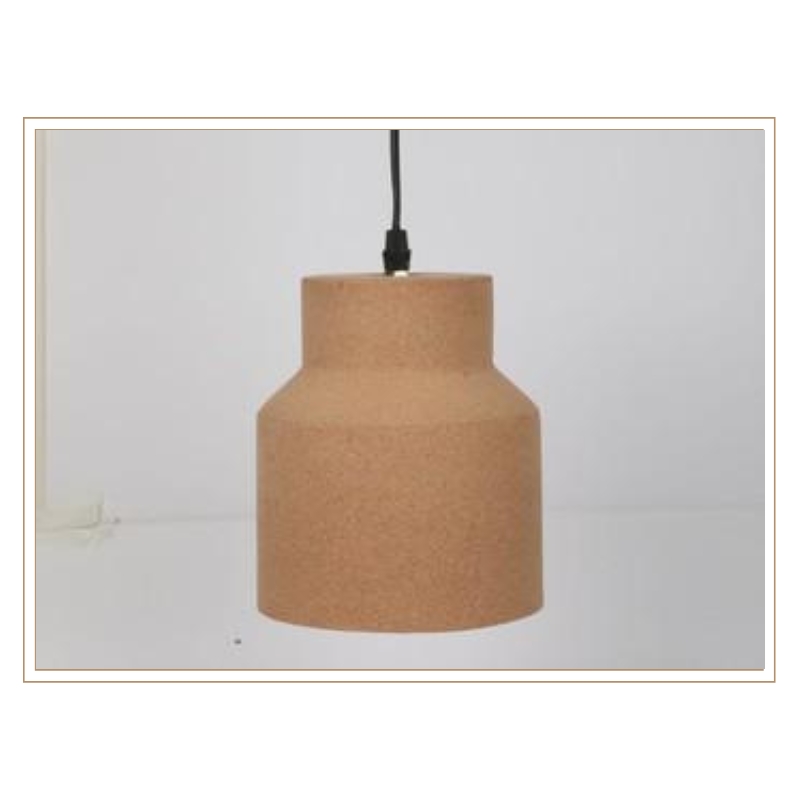 This pendant lamp features a structured cork shade with a geometric, bottle-like shape. Its smooth, natural surface provides soft lighting, making it ideal for kitchens, dining areas, and interiors that prioritize both style and environmental consciousness.