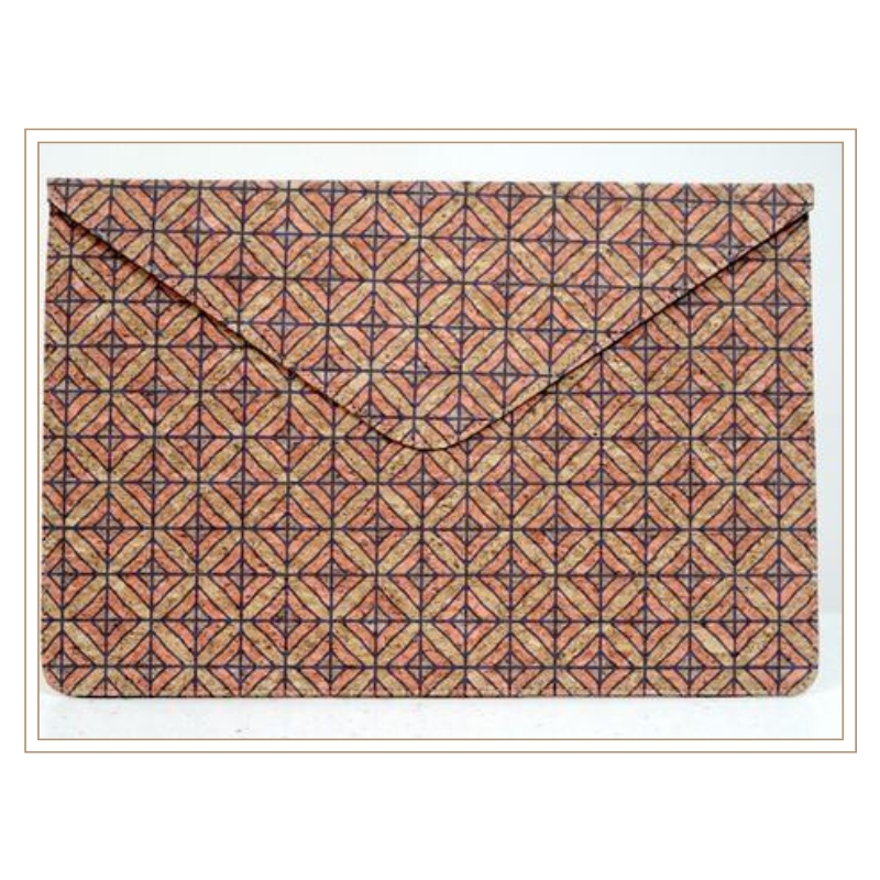 Cork Envelope Clutch with Intricate Star Pattern in Warm Earth Tones for Elegant Sustainable Fashion Accessories