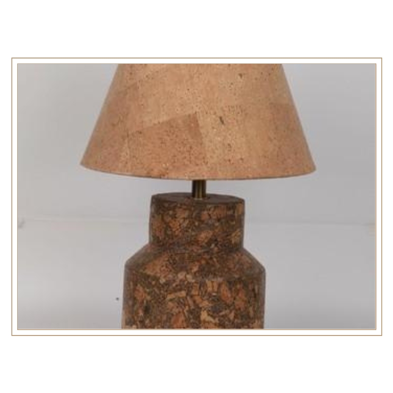 This striking lamp pairs a wide, conical cork shade with a uniquely shaped, textured cork base. Its design emphasizes the warm, organic appeal of cork, making it a perfect choice for adding natural style and environmental awareness to any room.