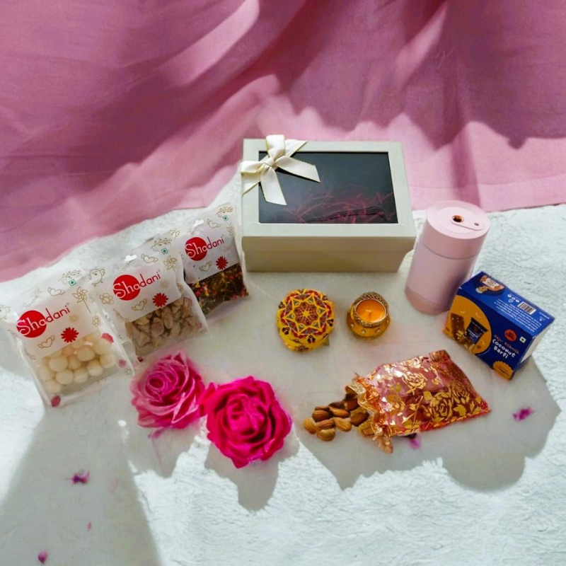 Kappa Box, Humidifier with Projection Star Light, Sweet Barfi96g, Mandala Print Scanted Candle, Décor T-Light candle, Almonds 50g Potli, Dry Sweet Amla 100g, Coconut