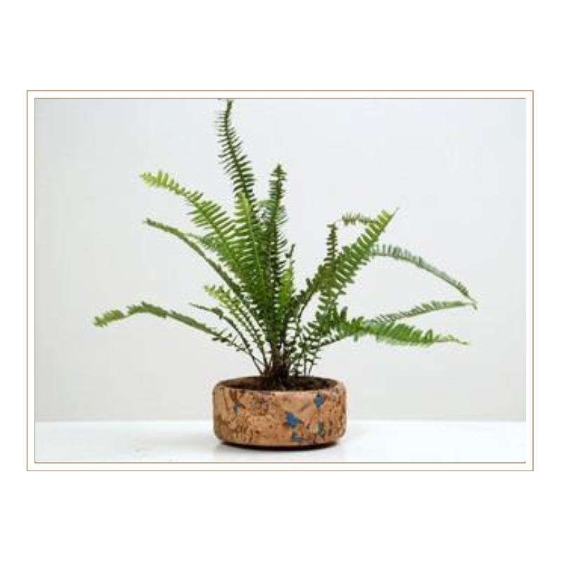 This distinctive cork cylindrical planter features delightful blue decorative accents that add a pop of color and personality to the natural cork surface. The sustainable cork construction provides excellent growing conditions with natural drainage and root aeration, while the unique blue elements create visual interest and artistic flair. Perfect for displaying ferns, small palms, or other leafy houseplants, this planter brings together natural materials with playful design touches. The combination of organic cork texture and colorful accents makes it ideal for creative spaces, children’s rooms, or anywhere you want to add both sustainability and whimsy to your plant displays.
