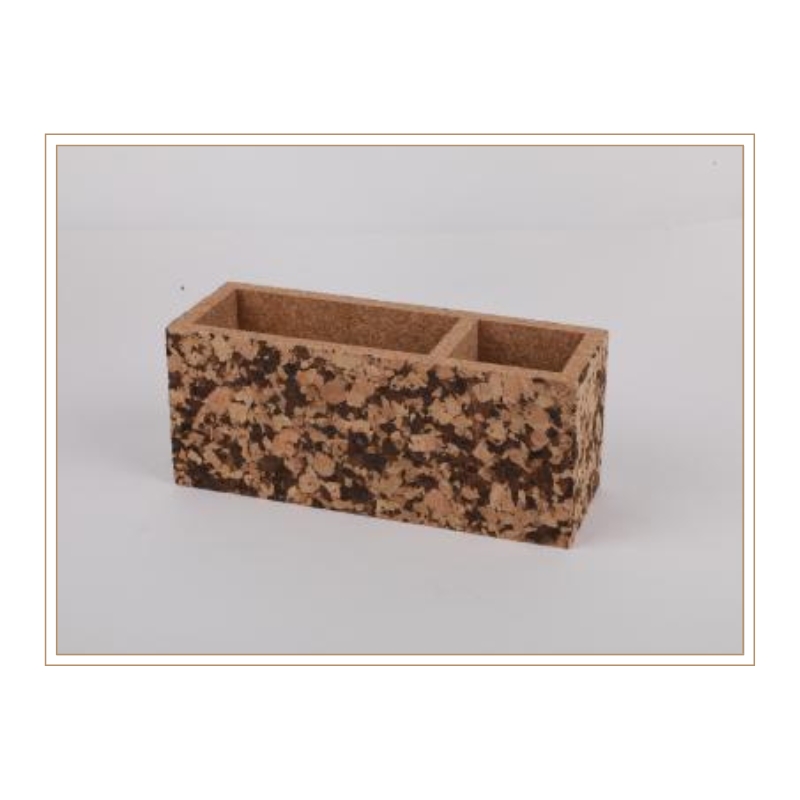 This practical cork organizer features two separate compartments, perfect for categorizing different types of items such as pens and pencils, or personal and professional supplies. The distinctive dark-speckled cork exterior adds visual interest while the sturdy construction ensures long-lasting durability. Ideal for keeping similar items grouped together while maintaining easy access, this organizer helps create a more systematic and efficient workspace.