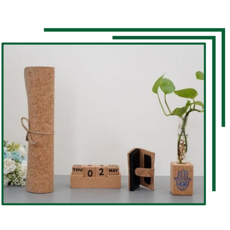 Perfect for fresh workspaces, this kit provides a cork mat, reusable cork calendar blocks, cork visiting card holder, and a vase with plant. Combining practicality and sustainability, it helps organize office essentials while promoting an eco-friendly mindset.