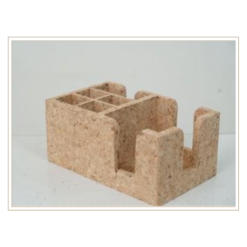 This intricately designed cork desktop organizer resembles a miniature castle with various compartments and levels. Perfect for storing pens, paper clips, sticky notes, and small office supplies, it combines functionality with architectural charm for creative workspaces.