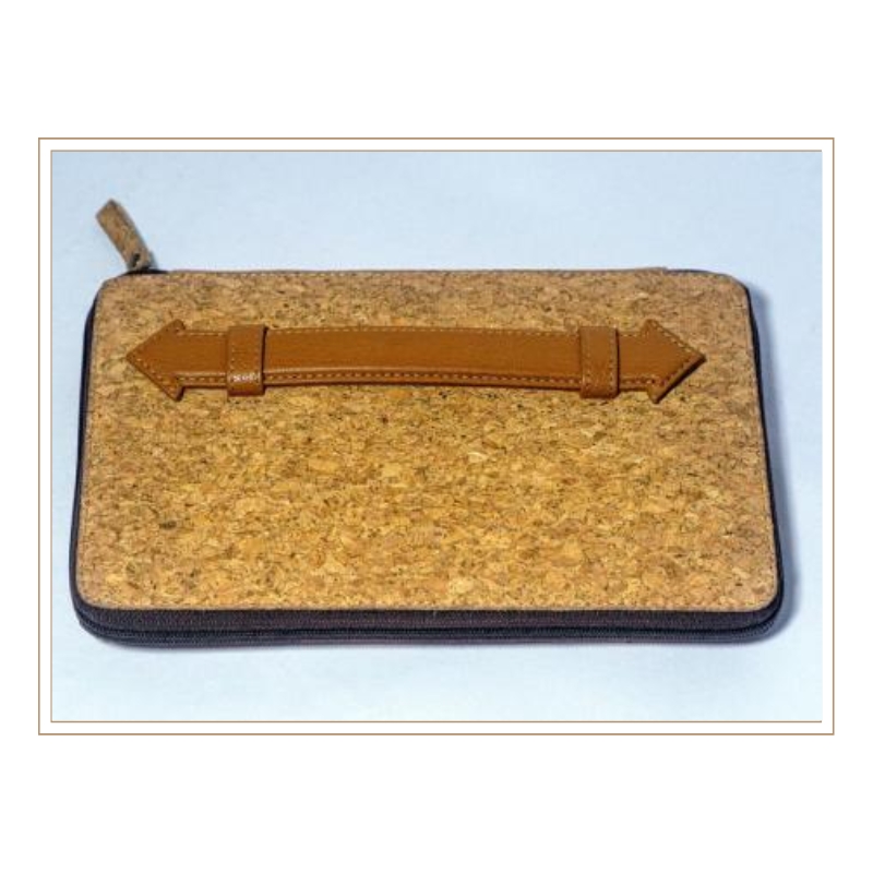 Premium Eco-Friendly Cork Multipurpose Zipper Pouch with Leather Strap Handle