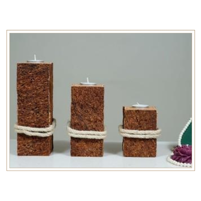 These handcrafted candle holders, made from natural materials and accented with thick ropes, offer a charming rustic vibe. Perfect for cozy ambiance on mantels or tables, the trio in varying heights adds both visual interest and practical candlelight.