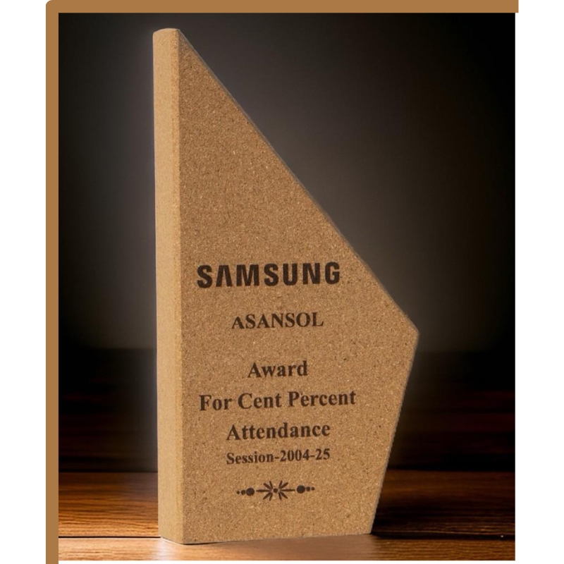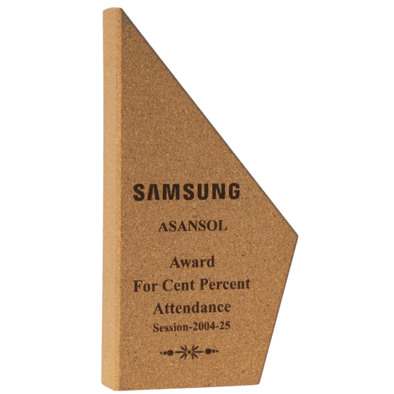 This award is presented by Samsung Asansol to recognize individuals who achieved perfect attendance during the 2004-25 session. The honor celebrates dedication, reliability, and commitment, acknowledging those who consistently participated without absence. The trophy’s unique geometric shape underscores the distinction of this achievement, making it a symbol of perseverance and dependability within the organization.