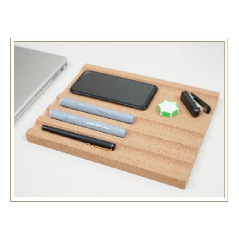 Spacious Multi-Channel Cork Desk Tray for Efficient Storage of Writing Instruments and Office Necessities