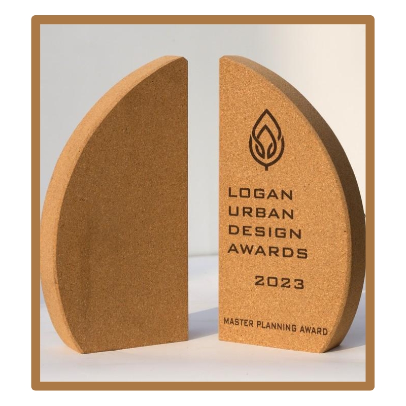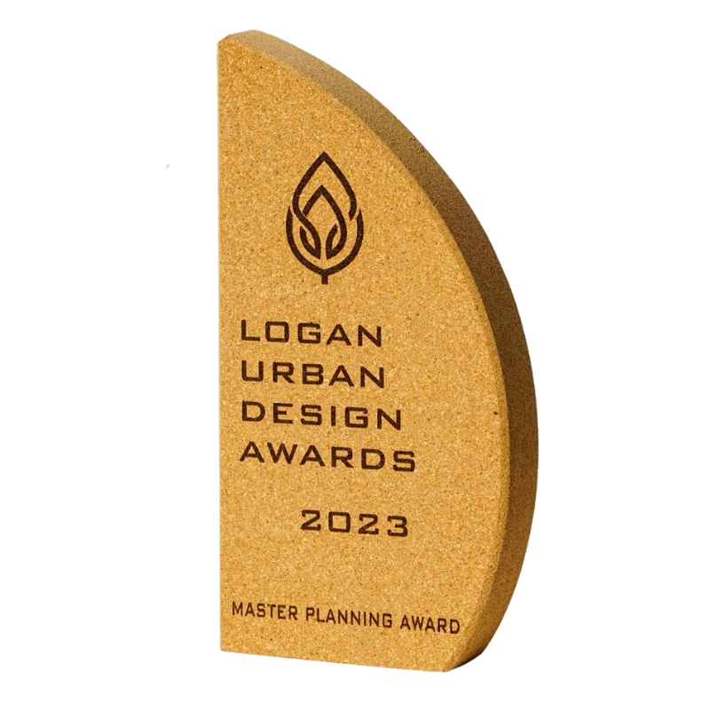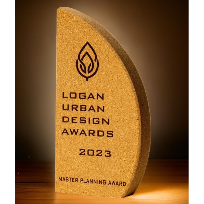 This distinctive award plaque features a modern geometric shape crafted from a textured composite material with embedded lighter accents. The design embodies contemporary achievement and recognition, suitable for honoring excellence, commitment, or milestone accomplishments. The lower embedded section provides a space for personalized inscriptions or dedications, making this plaque an elegant and memorable token of appreciation for any organization or event.