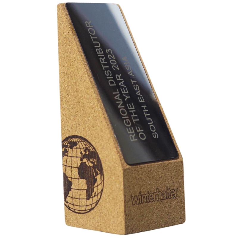 This award honors exceptional achievement as a regional distributor in South East Asia for 2023. Presented by Winterhalter, the accolade recognizes exemplary performance, outstanding service, and significant growth in the field of catering and kitchen solutions. The trophy’s distinctive design, featuring a globe and sleek black panel, symbolizes global impact and cross-border excellence, making it a prestigious acknowledgment of leadership and partnership in the region.